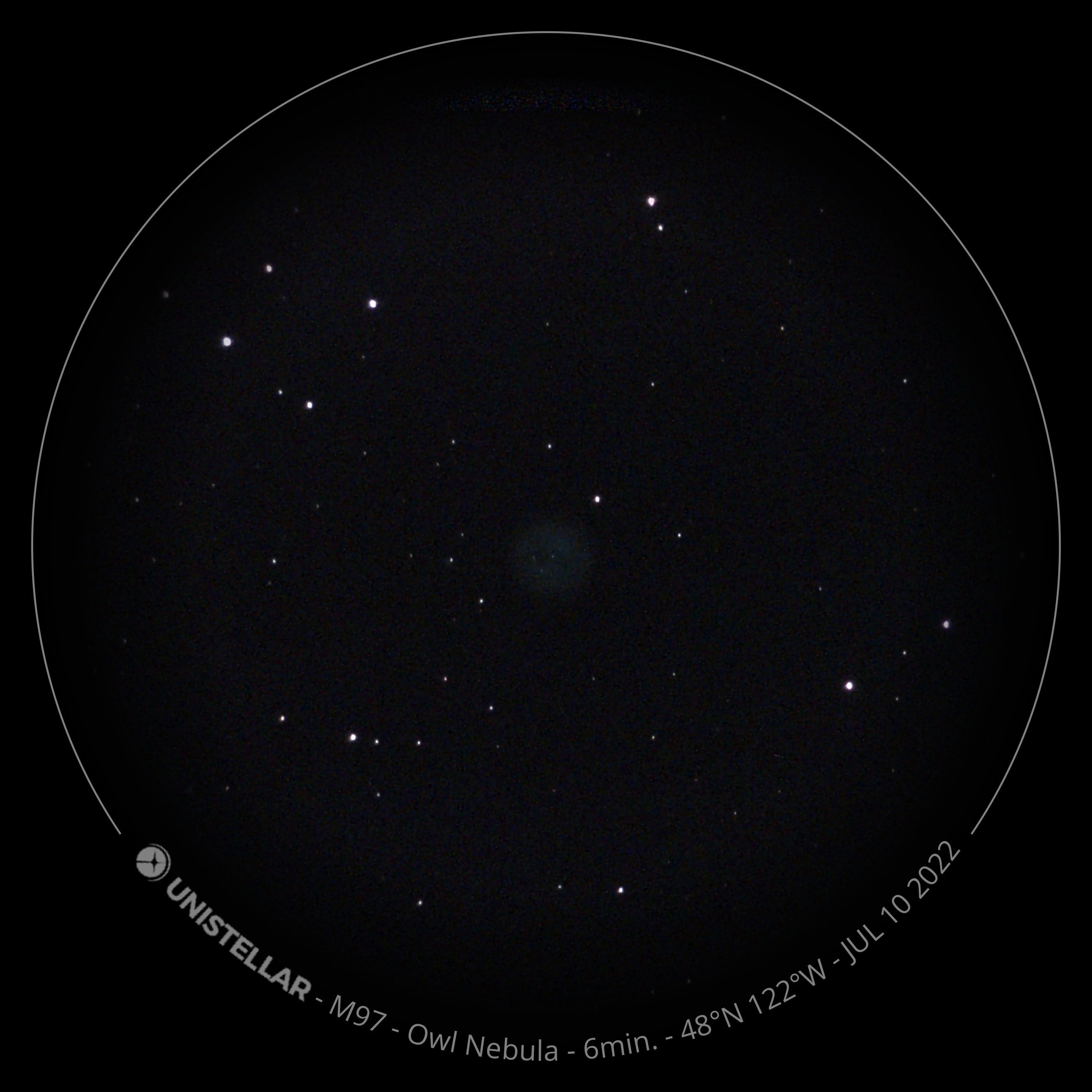 An early attempt at the Owl Nebula, which is both small and faint. It gets better once the color-stretching software update kicks in.